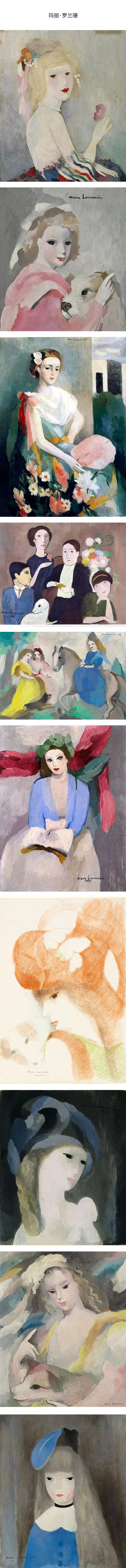 早期加入“洗衣船”艺术团体,与毕加索、布拉克等人往来,风格受立体派及野兽派影响,画风独特,展现温柔的氛围。1914年与德国男爵结婚,被法国政府指控为间谍而流亡西班牙。离婚后,重返巴黎受邀帮杂志、时尚名媛绘画,其中包括香奈儿女士,但香奈儿女士认为画得不像,不过名声却水涨船高,此时期为作品量最丰富的,是当时少数能与男性画家平起平坐的女画家。